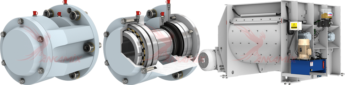 Уплотнительная группа двухвального бетоносмесителя C.M. Costruzioni Meccaniche s.r.l. MB 1500 — это специально разработанный комплект герметизации вала, состоящий из ряда металлических и полиуретановых компонентов, который предотвращает протекание цементного молочка. При правильном плановом обслуживании ожидаемый срок службы каждого подшипника может превышать 500 000 м³ производства.