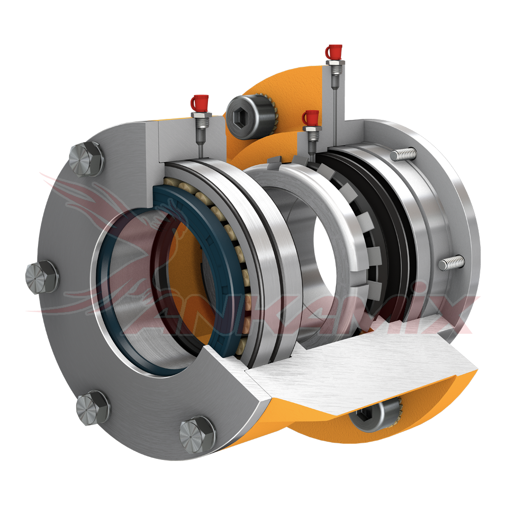 Уплотнительная группа со стороны редуктора для двухвального бетоносмесителя MEKA МВ 1500 (1.0 м³/цикл) — это специально разработанный комплект герметизации вала, состоящий из ряда металлических и полиуретановых компонентов, который предотвращает протекание цементного молочка. При правильном плановом обслуживании ожидаемый срок службы каждого подшипника может превышать 500 000 м³ производства.