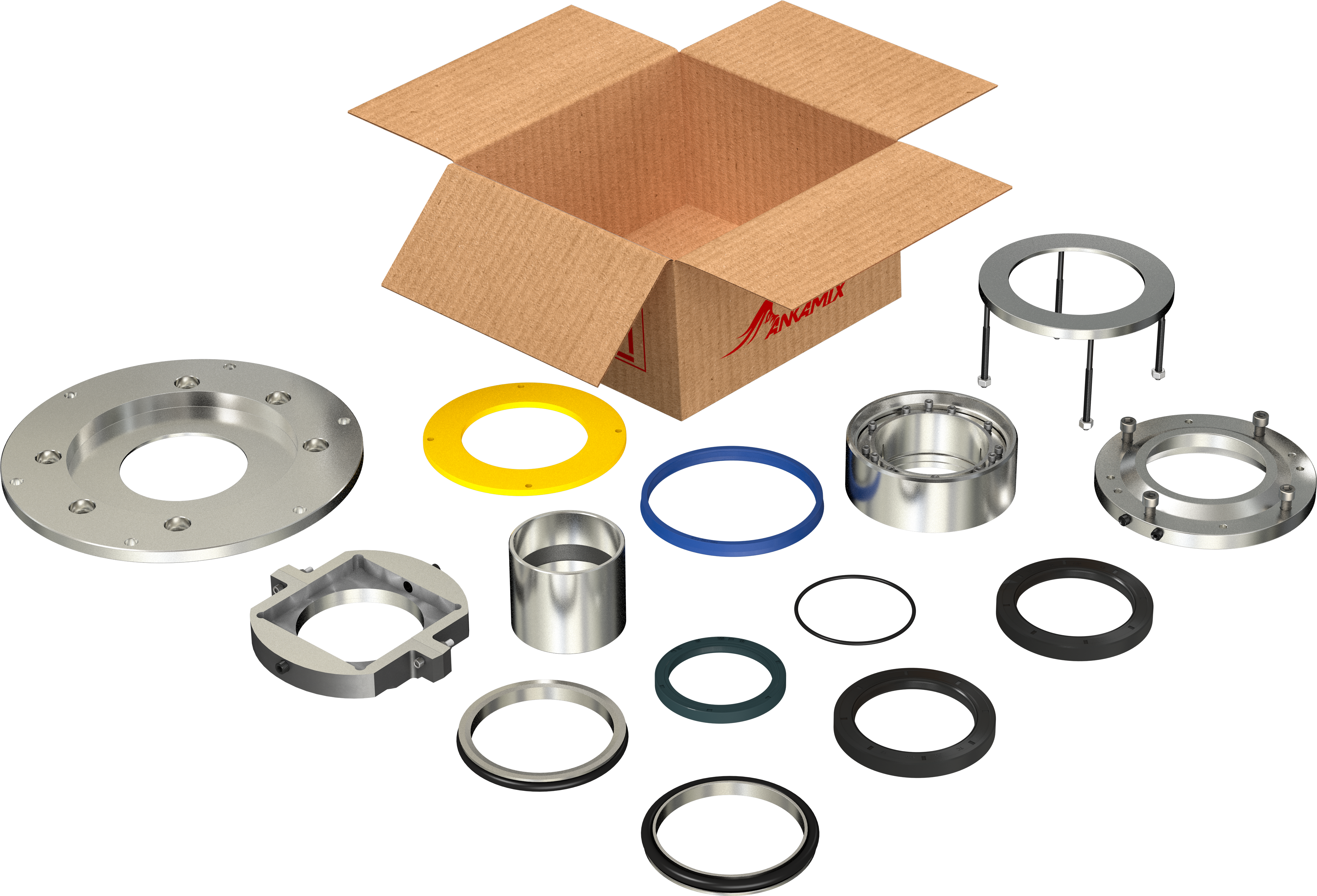 Ремкомплект уплотнительной группы со стороны редуктора без подшипника для двухвального бетоносмесителя SICOMA MAO 4500/3000 — это специально разработанный комплект герметизации вала, состоящий из ряда металлических и полиуретановых компонентов, который предотвращает протекание цементного молочка. При правильном плановом обслуживании ожидаемый срок службы каждого подшипника может превышать 500 000 м³ производства.