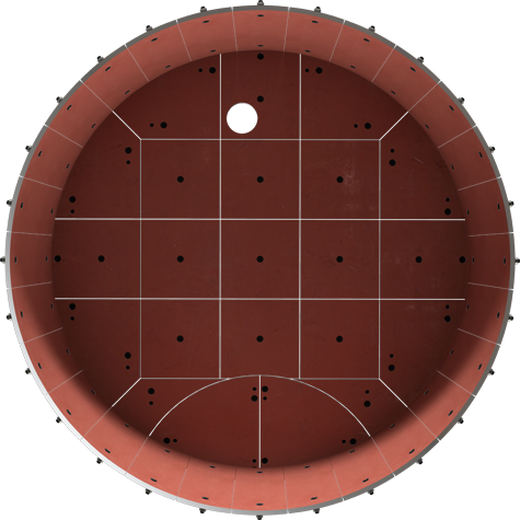 Комплект брони для планетарного бетоносмесителя S.I.CO.MA. S.r.l. MP 750/500 производительностью 0.5 м³/час с одним выгрузочным затвором представляет собой набор сегментов, закреплённые винтовым способом с внутренней стороны смесительной ёмкости. Сегменты брони изготавливаются из износостойкой стали Hardoxтвёрдостью 425 - 475 HBW (S = 12 мм). Заготовки сегментов стеновой брони пропускают через листогибочный станок позволяющей из гладкого металлического листа вырезанной лазером по чертежу сделать объёмную заготовку нужной формы и радиуса.