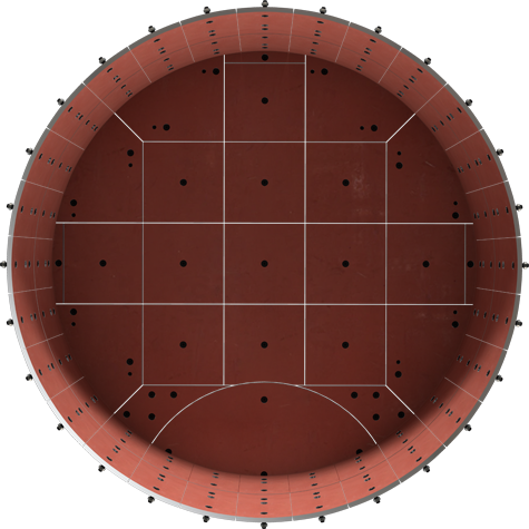 Комплект брони для планетарного бетоносмесителя SICOMA ZHUHAI CO., LTD MPC 750/500 производительностью 0.5 м³/час с одним выгрузочным затвором представляет собой набор сегментов, закреплённые винтовым способом с внутренней стороны смесительной ёмкости. Сегменты брони изготавливаются из износостойкой стали Hardoxтвёрдостью 425 - 475 HBW (S = 12 мм). Заготовки сегментов стеновой брони пропускают через листогибочный станок позволяющей из гладкого металлического листа вырезанной лазером по чертежу сделать объёмную заготовку нужной формы и радиуса.