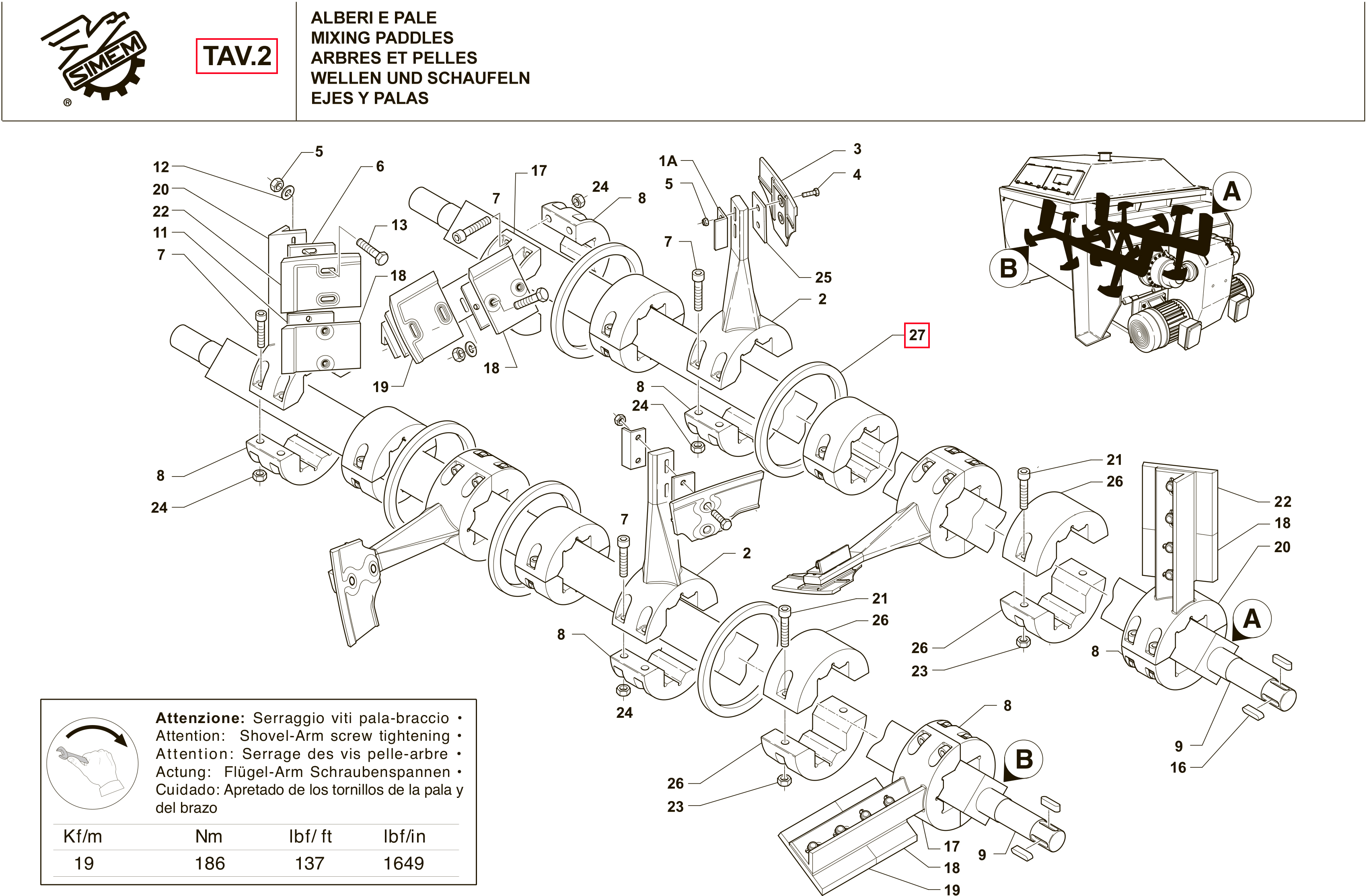 TAV.2/27 Кольцо сбивки бетона для двухвального бетоносмесителя SIMEM MSO 3000 (2.0 м³/цикл) — это металлический элемент, предназначенный для механического удаления бетона с рычагов.