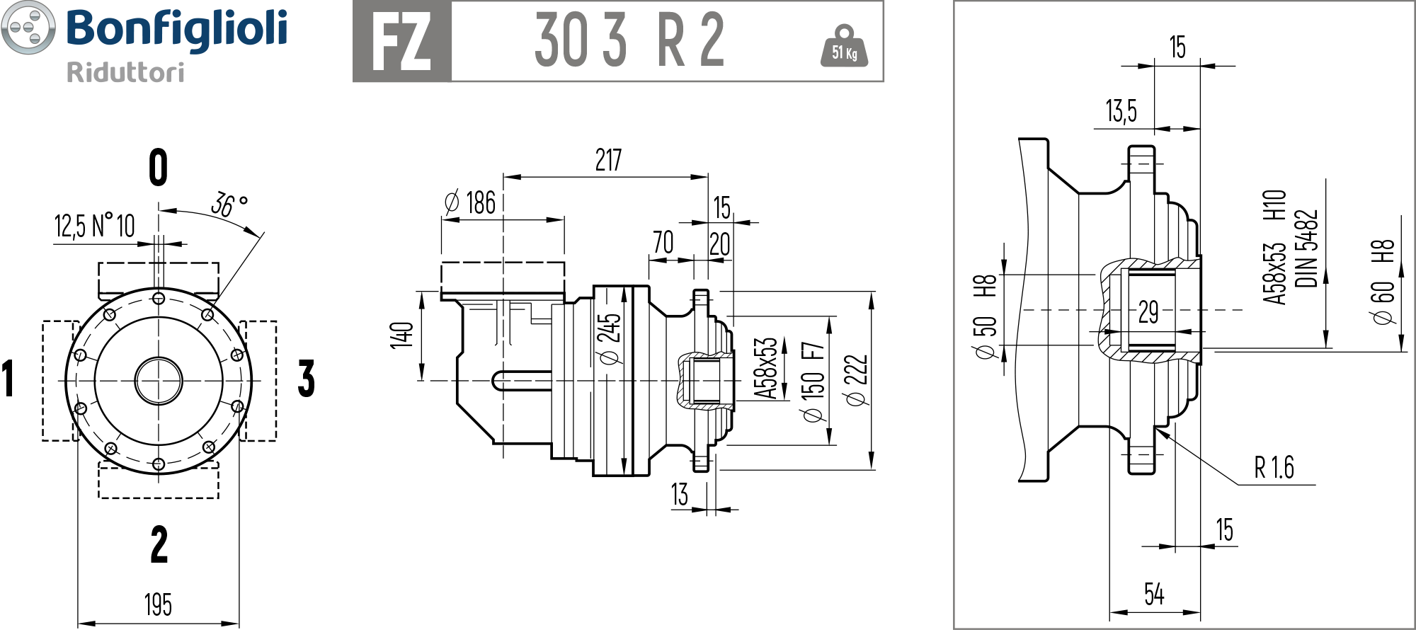 | Конфигурация на выходе | FZ = Полый шлицевой вал |
