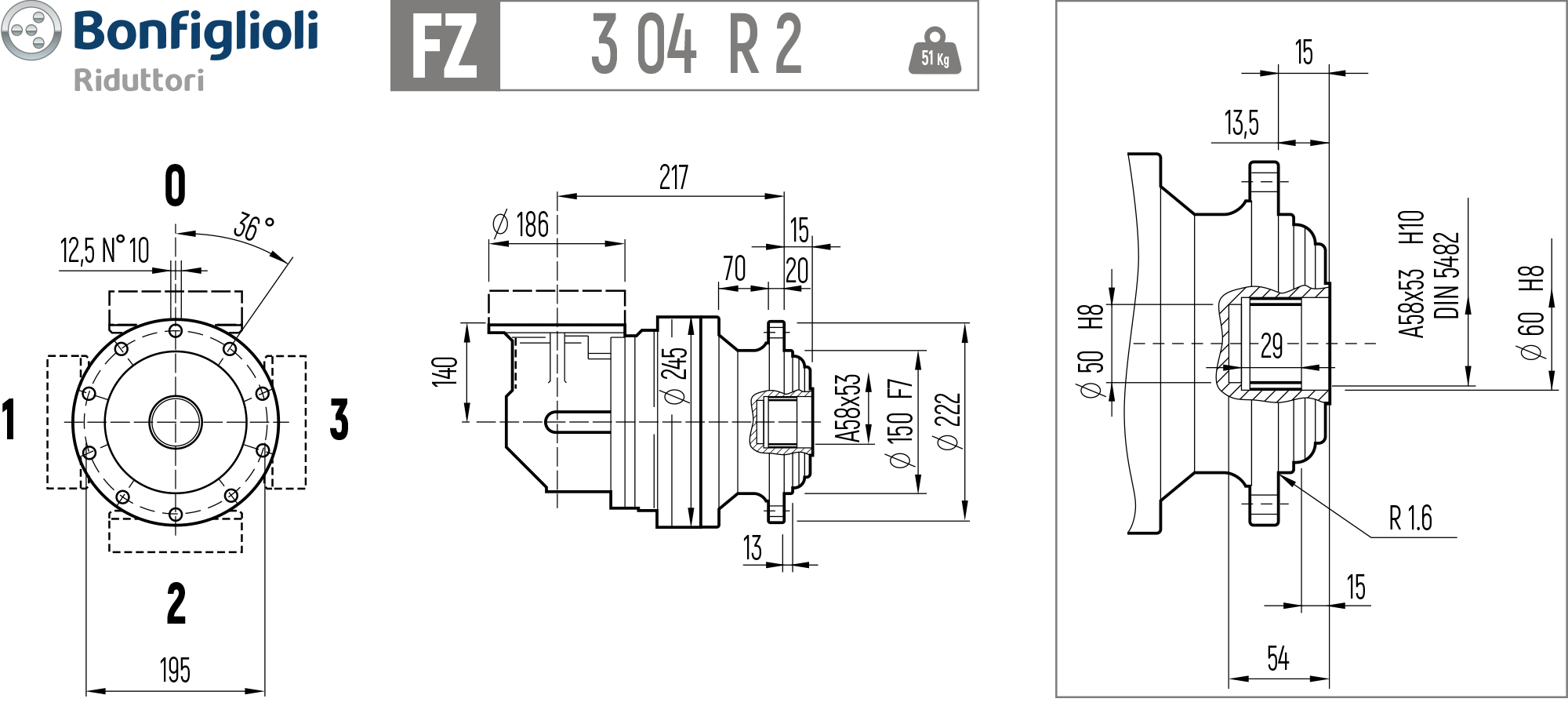 | Конфигурация на выходеFZ = Полый шлицевой вал |