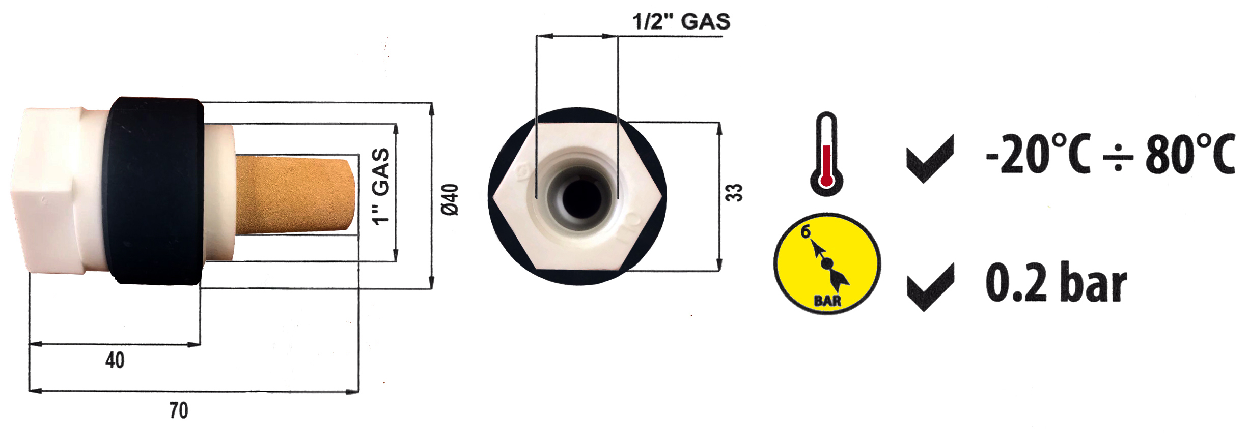 | Рабочее давление | 0.2 бар |