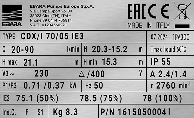 — Производитель: EBARA Pumps Europe S.p.A. / Италия