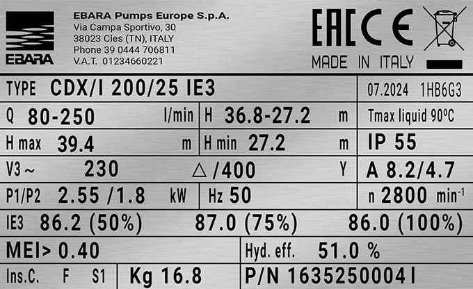 — Производитель: EBARA Pumps Europe S.p.A. / Италия