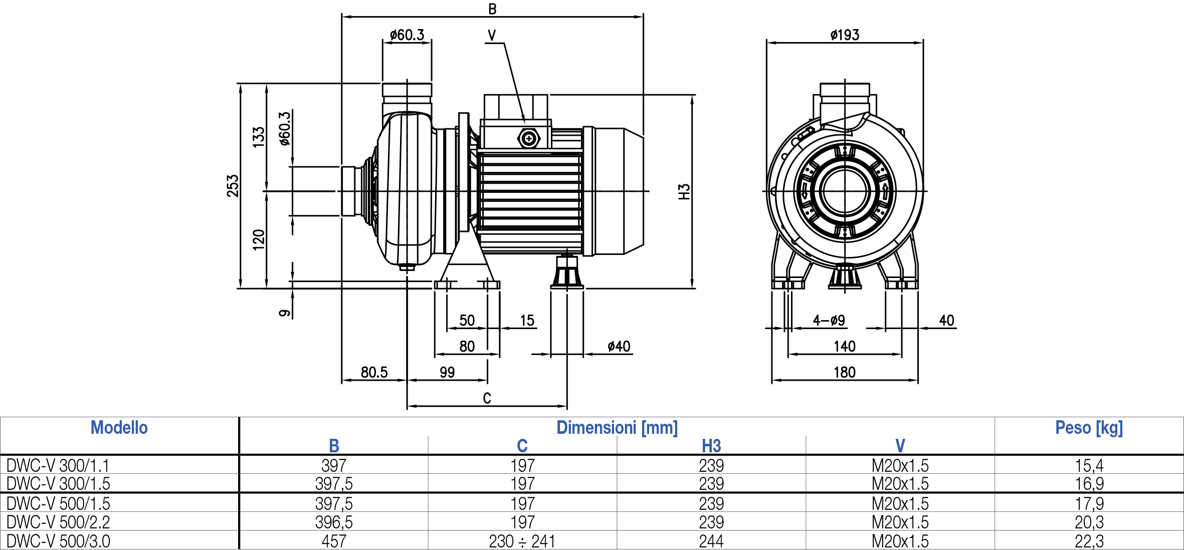 | Серия насосаDWC-V | Модель насосаI 500/1.5 IE3 | Производительность [Q]12 ~ 45 м³/ч |