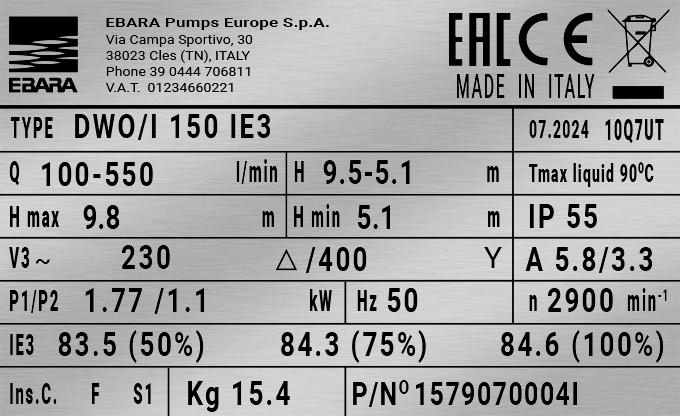 — Производитель: EBARA Pumps Europe S.p.A. / Италия