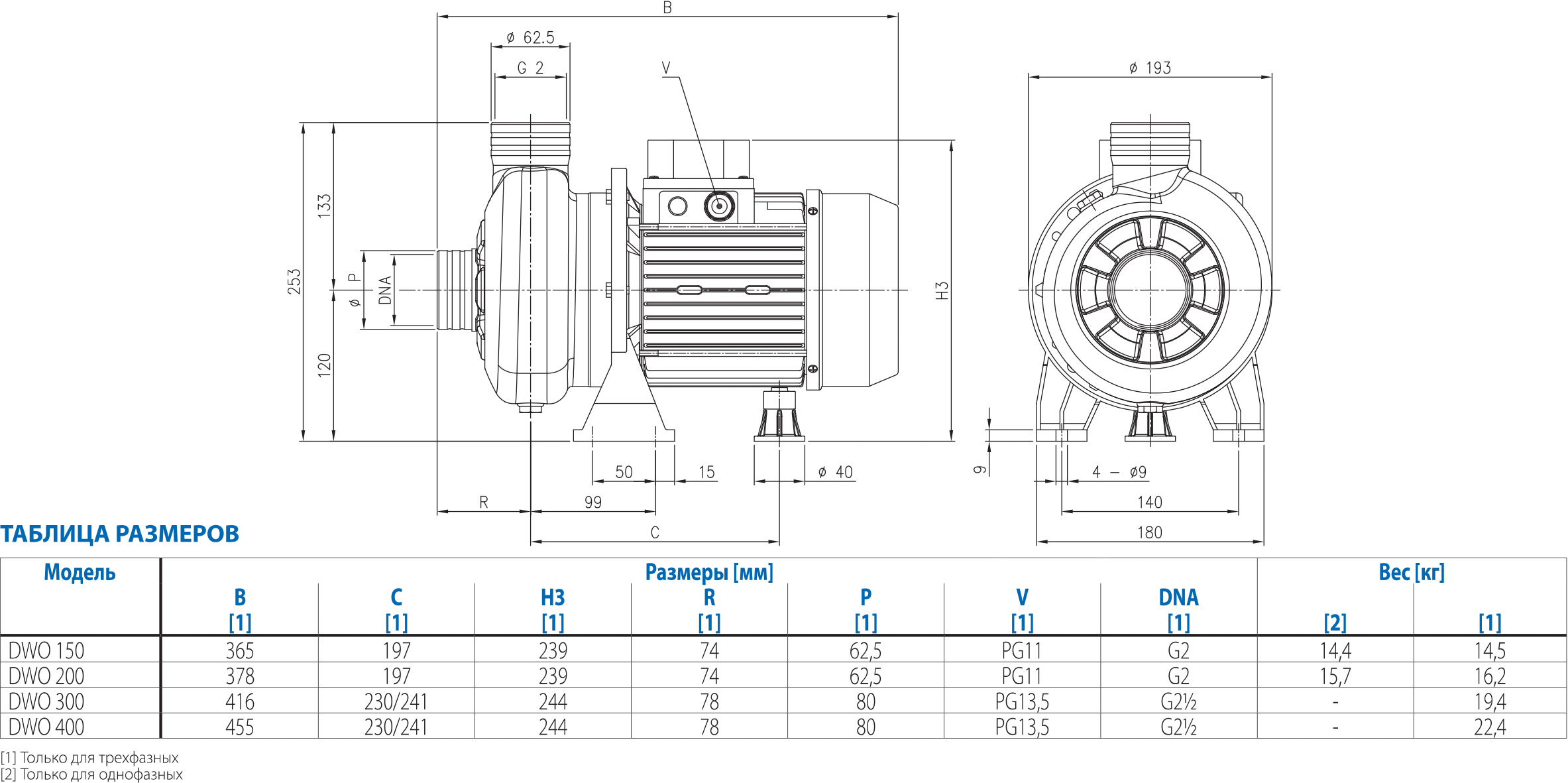 | Серия насосаDWO | Модель насосаI 150 IE3 | Производительность [Q]6 ~ 33 м³/ч |