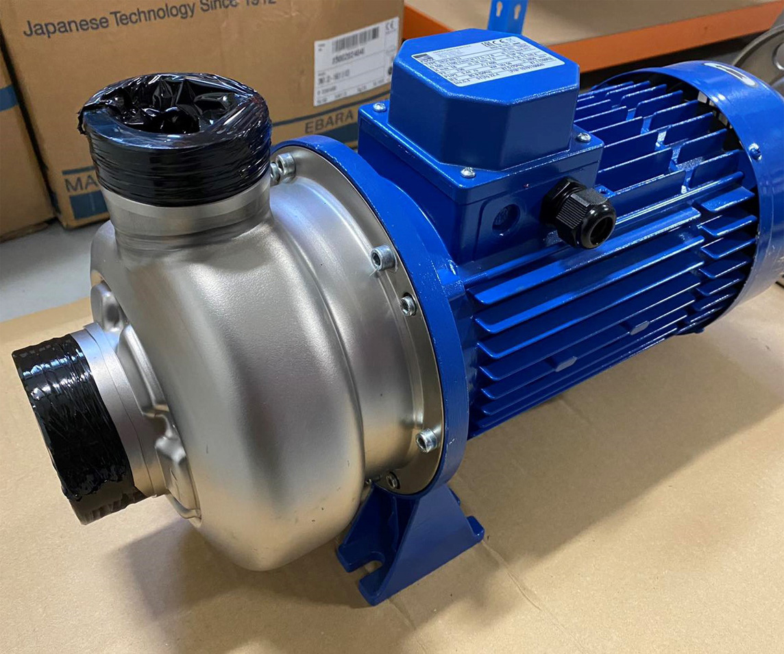 1579070004I Насос моноблочный центробежный резьбовой EBARA Pumps Europe S.p.A. DWO/I 150 IE3 / Q: 33 м³/ч / H: 5.1 м / P: 1.1 кВт / n: 2900 об/мин — из нержавеющей стали AISI 304 (EN 1.4301) с радиальным рабочим колесом открытого типа предназначен для перекачки жидкостей с твердыми включениями диаметром до 19 мм в промышленном применении, систем подачи воды под давлением для дома и жилых зданий, эффективно работает на орошении, осуществляют работу противопожарных и моечных установок.