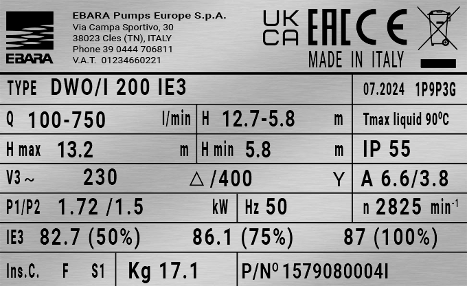 — Производитель: EBARA Pumps Europe S.p.A. / Италия