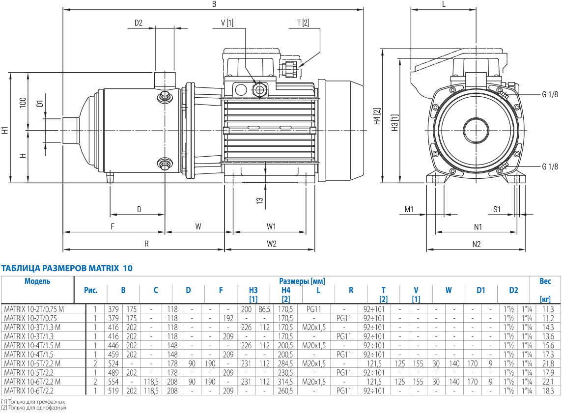 | Серия насосаMATRIX | Модель насоса10-5T/2.2 M | Производительность [Q]3.6 ~ 15 м³/ч |