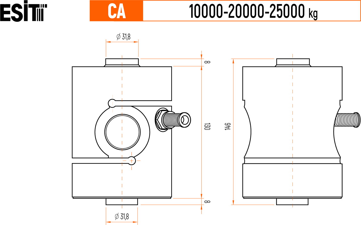 Датчик тензометрический ESİT Electronic серии CA 10.000 кг (10 тонн) / 2 mV/V / C3 - представляет собой датчик сжатия используются в промышленности в высокомощном весовом оборудовании, измеряющем силы сжатия. Надежная конструкция такого датчика гарантирует его отличную устойчивость к перегрузкам, в том числе боковым. Благодаря особенностям своей конструкции датчик СА находит применение даже в тяжелых условиях. Используется он в основном в автомобильных весах, платформенных весах. Датчик покрыт антикоррозийной краской; соответствует стандарту IP68.
