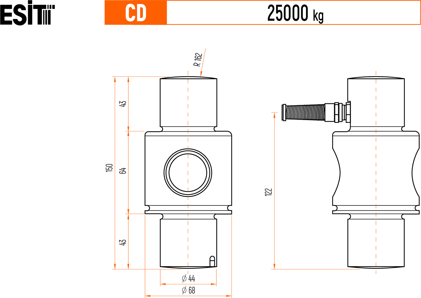 Датчик тензометрический ESİT Electronic серии CD 25.000 кг (25 тонн) / 2 mV/V / C3 — представляет собой датчик колонного типа разработанный для измерения веса и силы с высокой пропускной способностью компрессионного типа в промышленных условиях. Датчики CD подходят для тяжелых промышленных условий и находят применение в автомобильных весах, платформенных весах, системах взвешивания резервуаров, автоматических весовых приборах и оборудовании для технологического взвешивания. Благодаря конструкции из сплава нержавеющей стали, покрытой антикоррозийной краской, а также области тензодатчика, сваренные с крышкой из нержавеющей стали, CD защищены по стандартам IP68, что означает, что они полностью могут погружаться в воду. Следует принять дополнительные меры для защиты конструкции от боковых нагрузок.