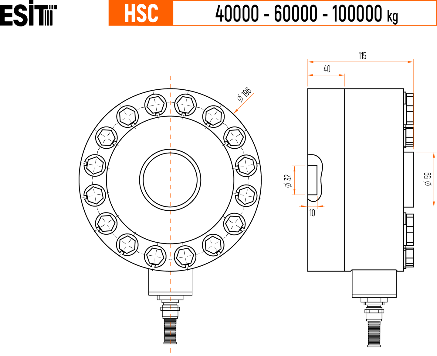 Датчик тензометрический ESİT Electronic серии HSC 100.000 кг (100 тонн) / 2 mV/V / C3 — функционирует по принципу сжатия, измеряя силу и массу с отличной точностью. Точность работы не теряется даже при высоких перегрузках. Вертикальные или горизонтальные нагрузки, а также сложные условия работы не помеха для функционирования тензодатчика HSC. Стальной корпус, покрытый противокоррозийной краской, обладает степенью защиты IP68. Приваренная крышка из нержавейки закрывает область тензорезисторов. Основная область применения таких датчиков — автоматические системы взвешивания, вагонные или автомобильные весы, системы взвешивания цистерн.